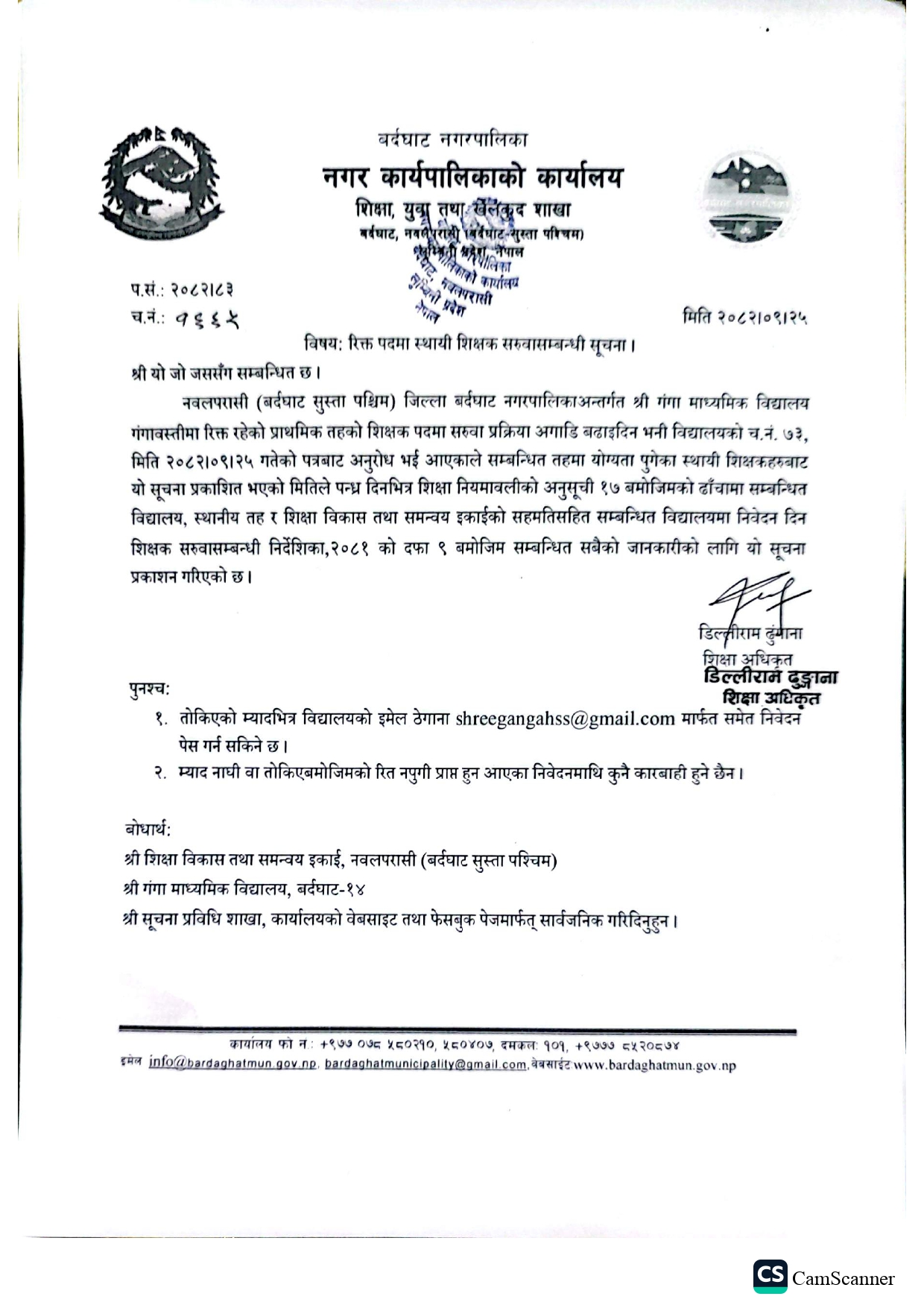 रिक्त पदमा स्थायी शिक्षक सरुवासम्बन्धी सूचना