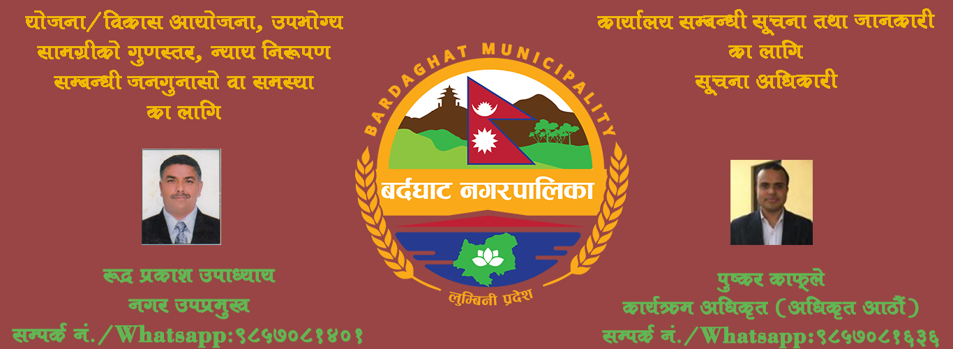 सेवा दिने कार्यालयः- बर्दघाट नगरपालिका कार्यालयको कार्यालय ( प्राविधिक शाखा )