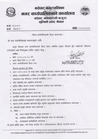 कार्यपालिकाको बैठक सम्बन्धमा - श्री नगर कार्यपालिका सदस्यज्यूहरु (सबै)