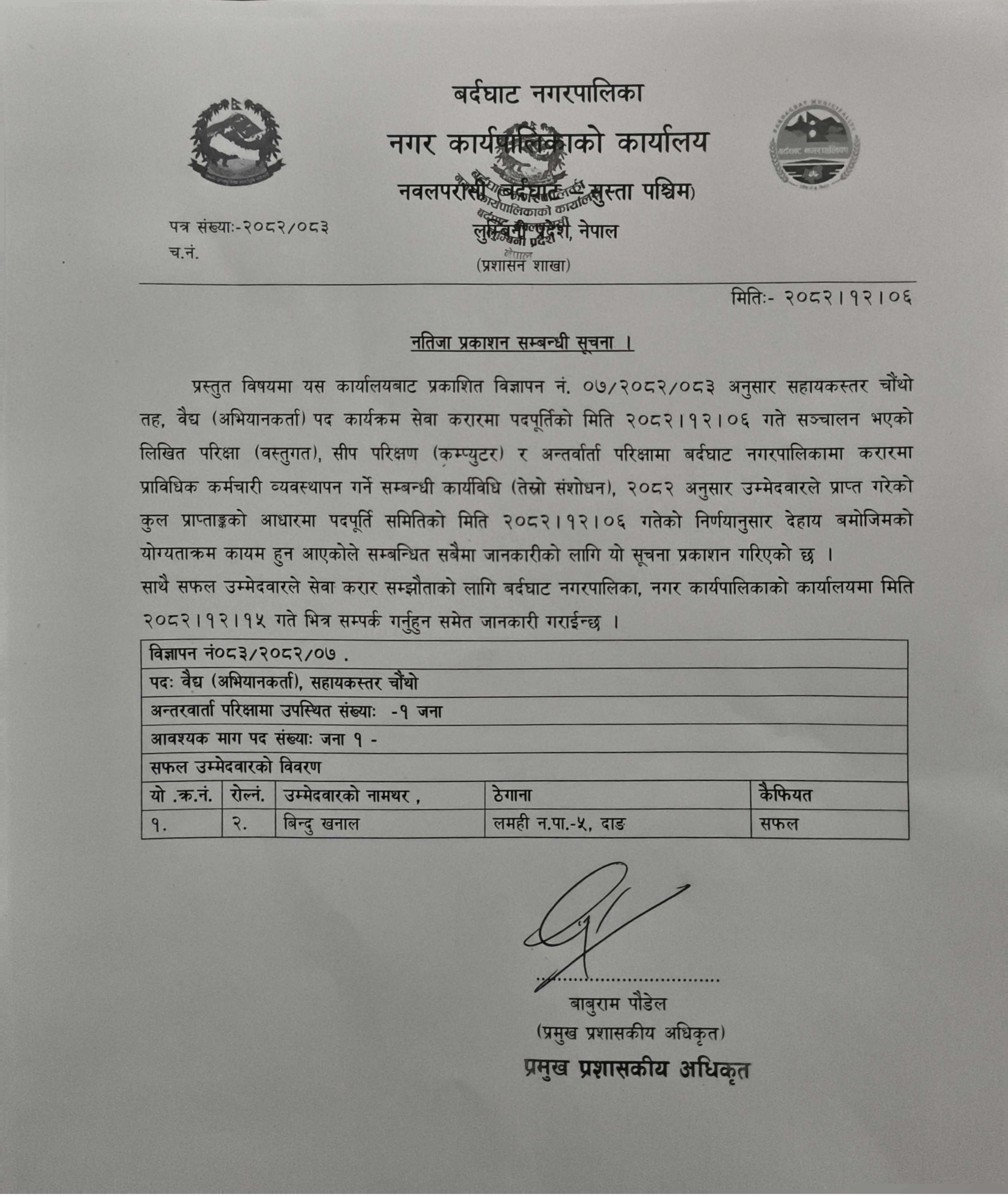 नतिजा प्रकाशन सम्बन्धी सूचना