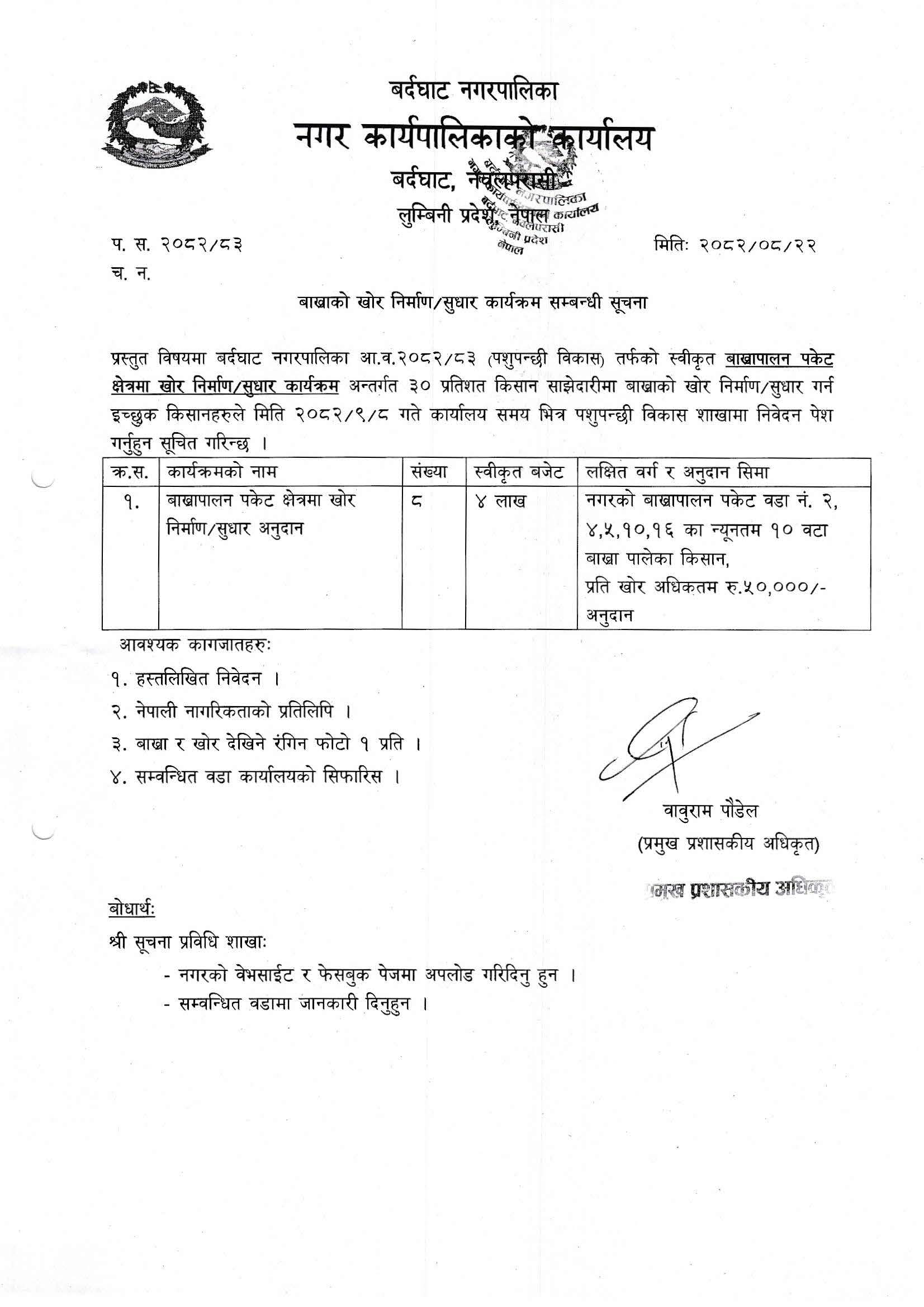 बाख्राको खोर निर्माण/सुधार कार्यक्रम सम्बन्धी सूचना