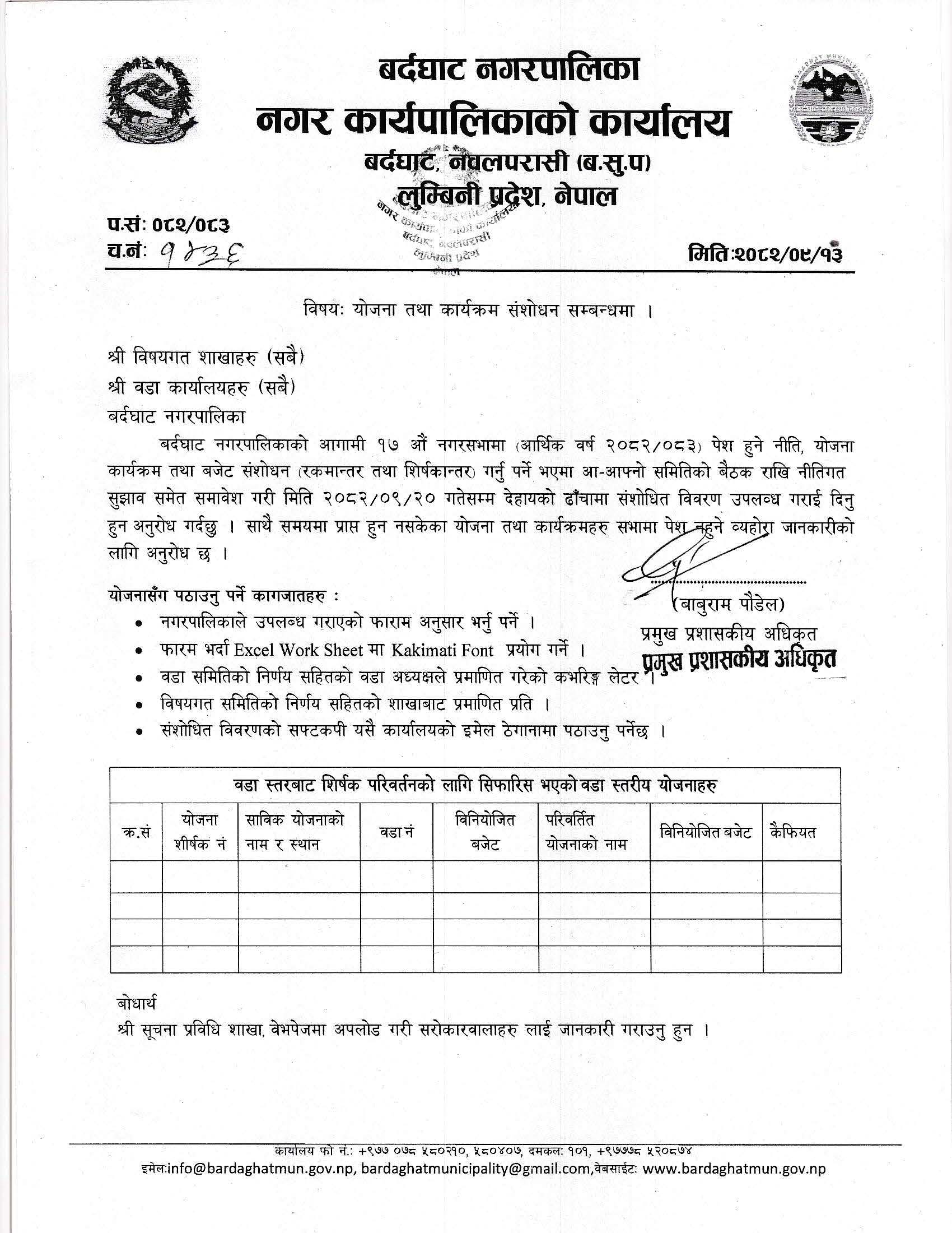 योजना तथा कार्यक्रम संशोधन सम्बन्धमा