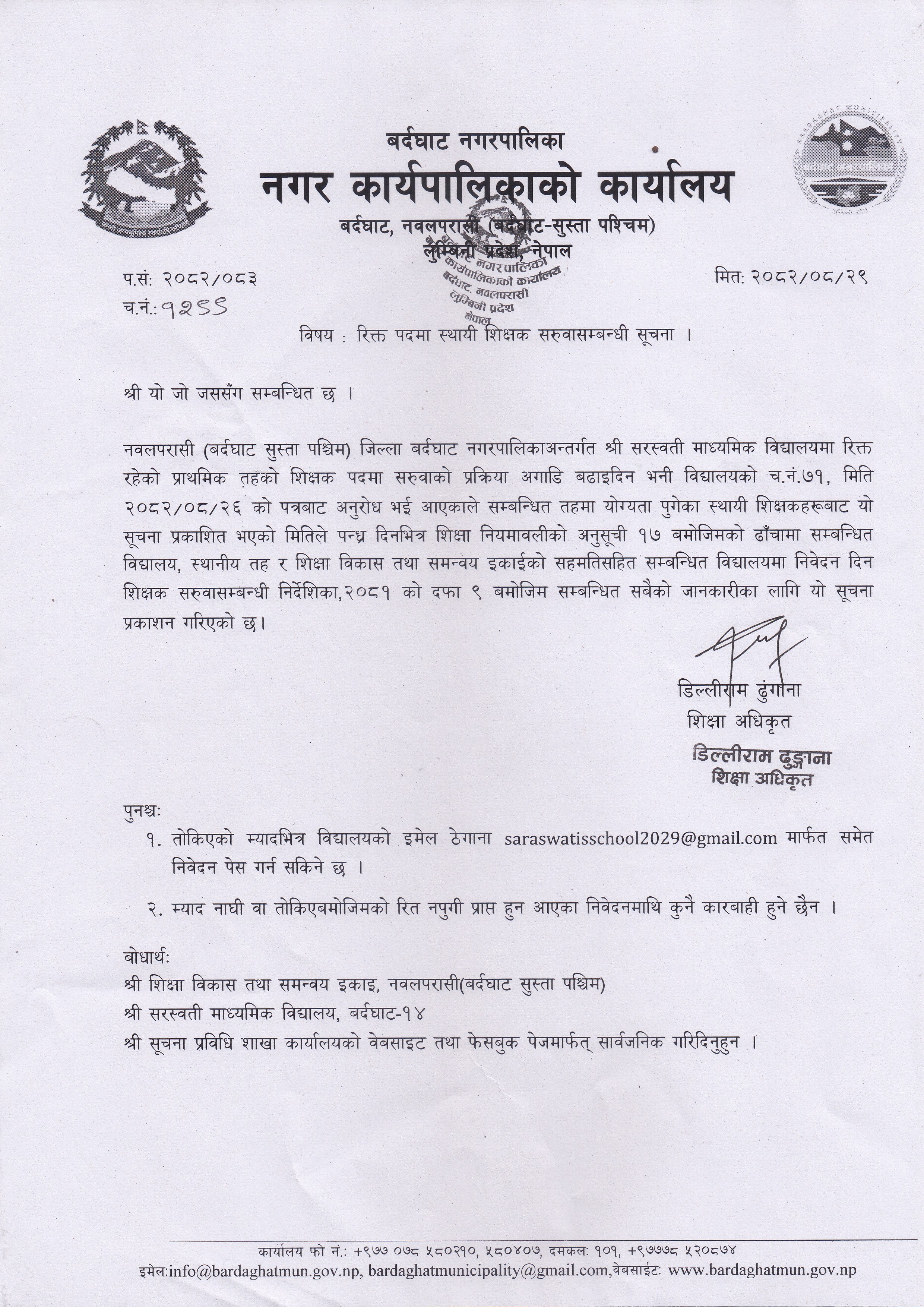 रिक्त पदमा स्थायी शिक्षक सरुवासम्बन्धी सूचना